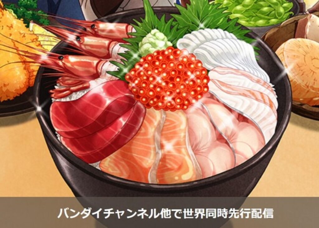河野: 料理はキャラクターのデザインを担当する人が、描いていますね。あれは本当に素晴らしい仕事をしています。 でも、その元絵に質感を出すテクスチャは、ぼくたち美術担当がやりましたね。 ちなみに、おでんから立つ湯気や、お刺身の光(テカり)なんかは、撮影担当の人が入れています。